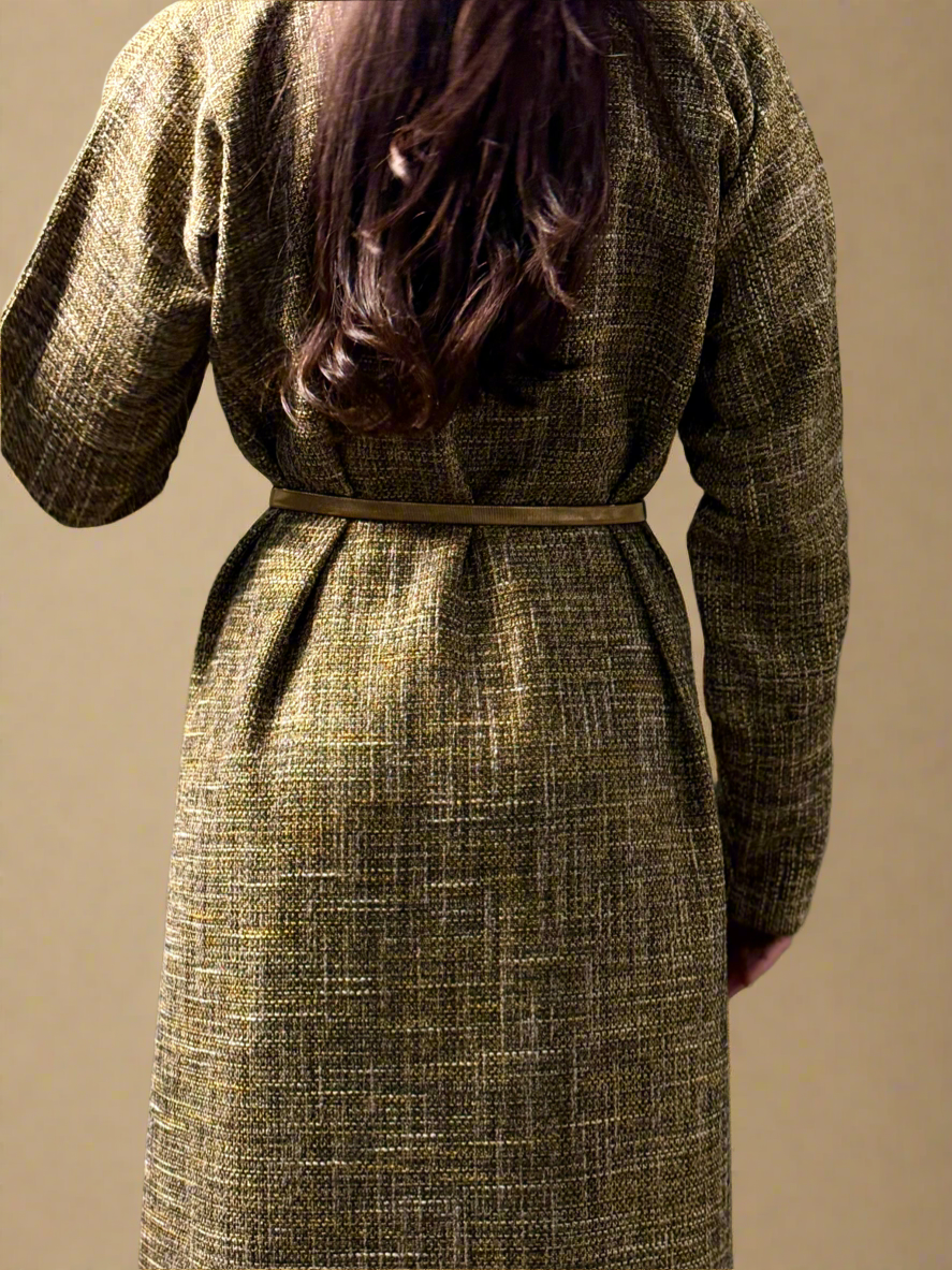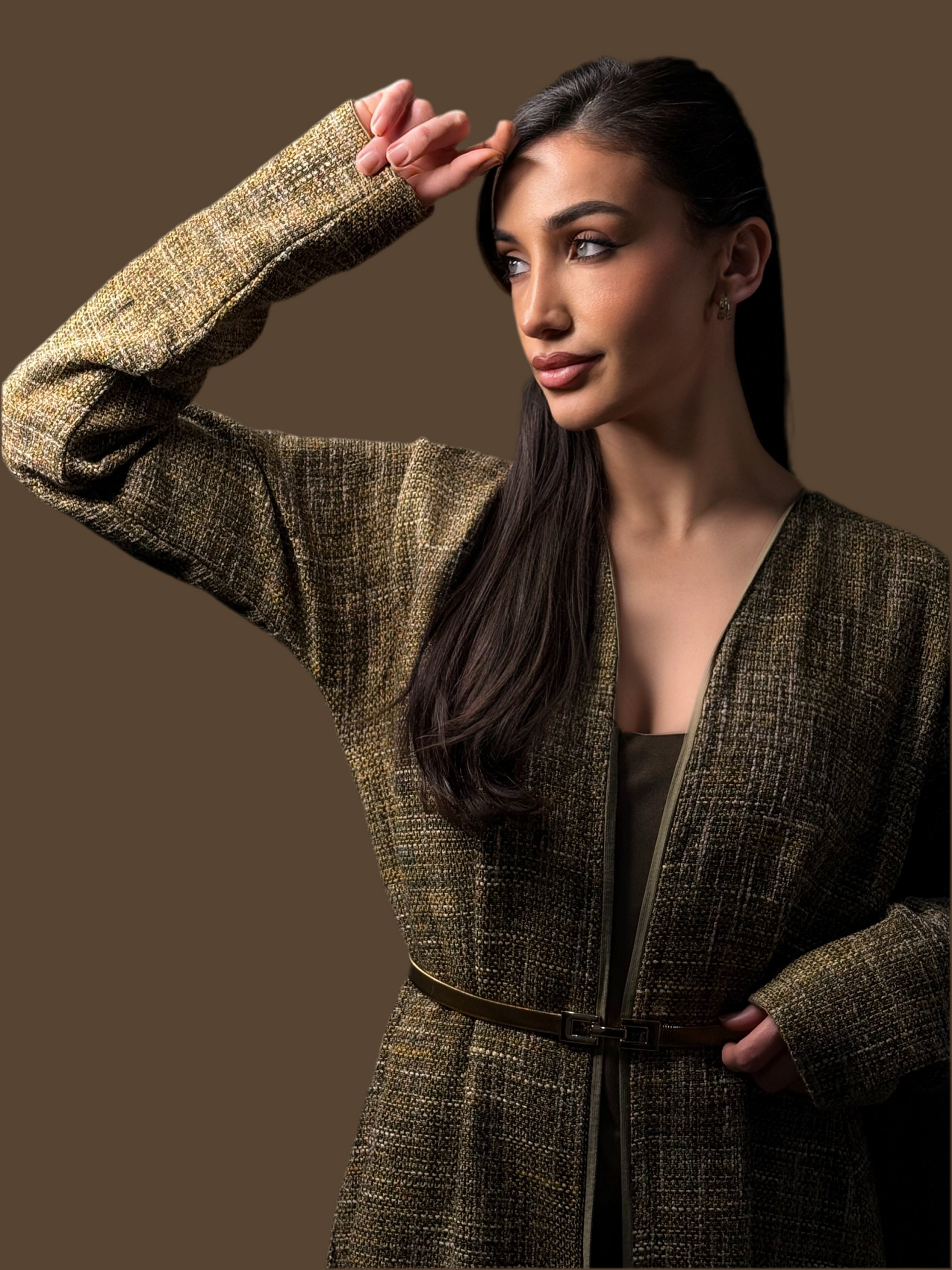 Textured Abaya with tones of mustard and browns. Belt not included. Model is size 8AUS